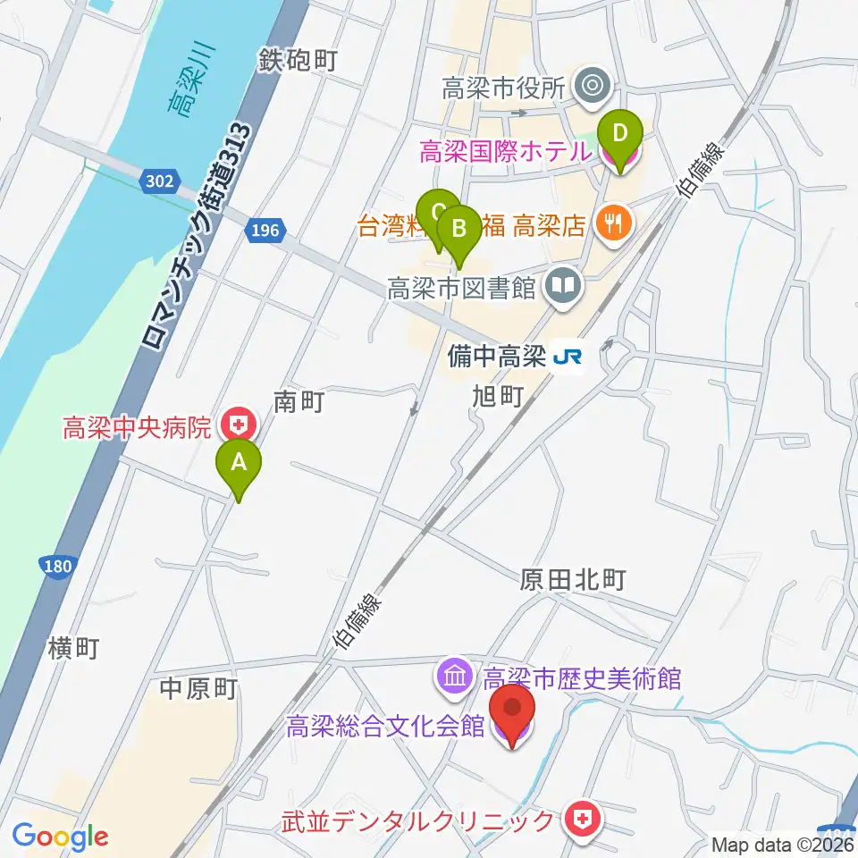 高梁総合文化会館周辺のホテル一覧地図