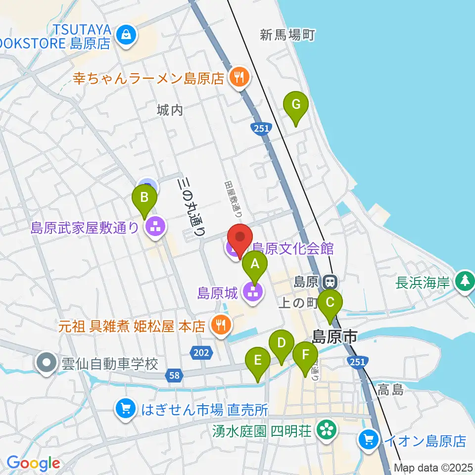島原文化会館周辺のホテル一覧地図