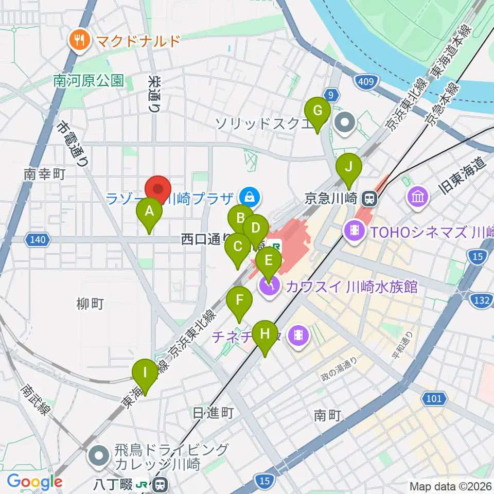 シアーミュージック 川崎校周辺のホテル一覧地図