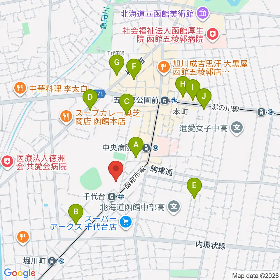 函館市青年センター周辺のホテル一覧地図
