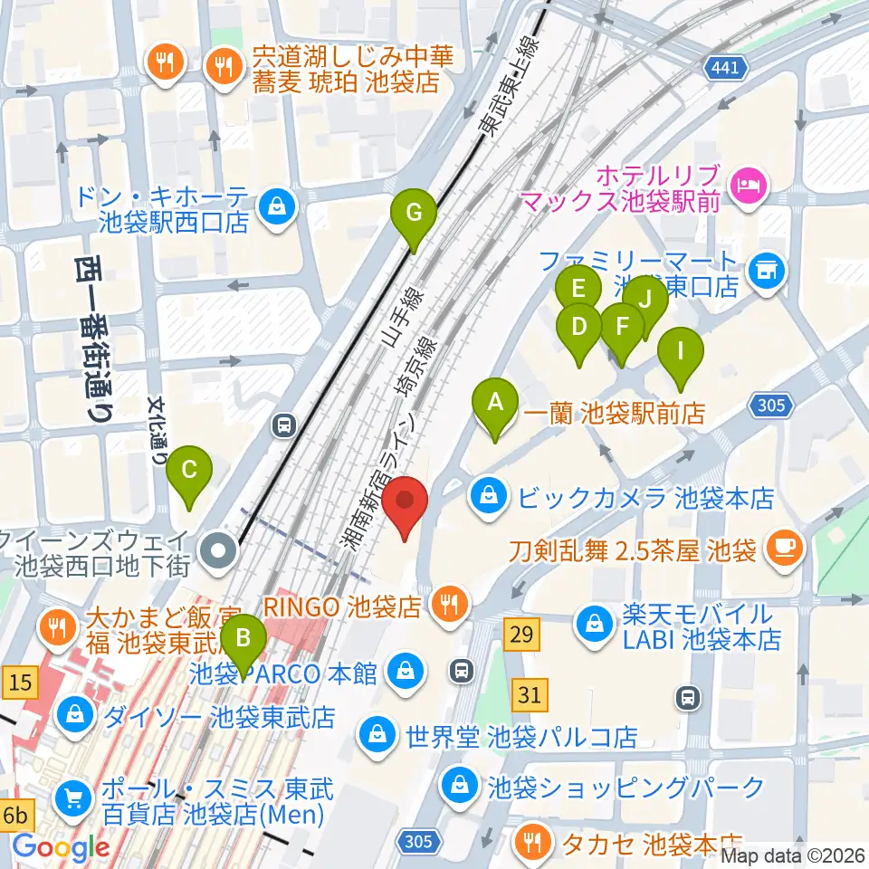 タワーレコード池袋店周辺のホテル一覧地図