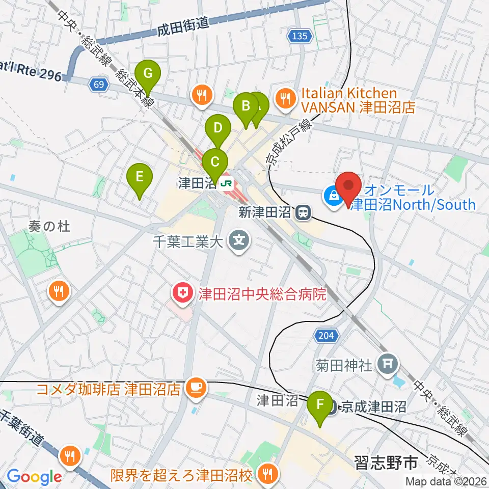 タワーレコード 津田沼店周辺のホテル一覧地図