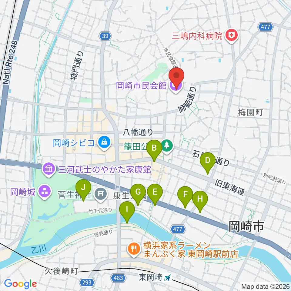 岡崎市民会館 あおいホール周辺のホテル一覧地図