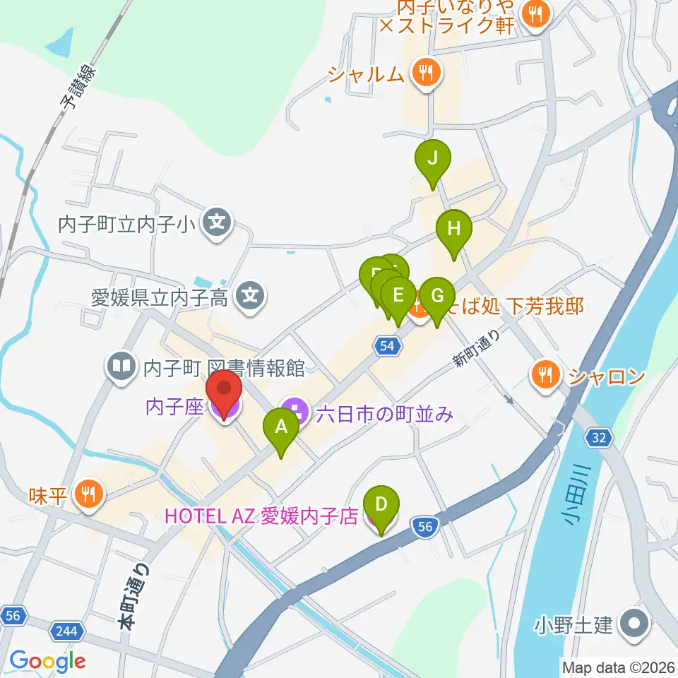 内子座周辺のホテル一覧地図