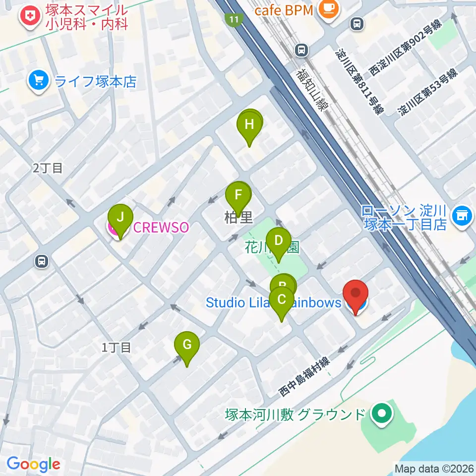 スタジオライラックレインボーズ周辺のホテル一覧地図