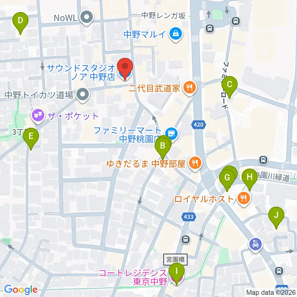 サウンドスタジオノア 中野店周辺のホテル一覧地図