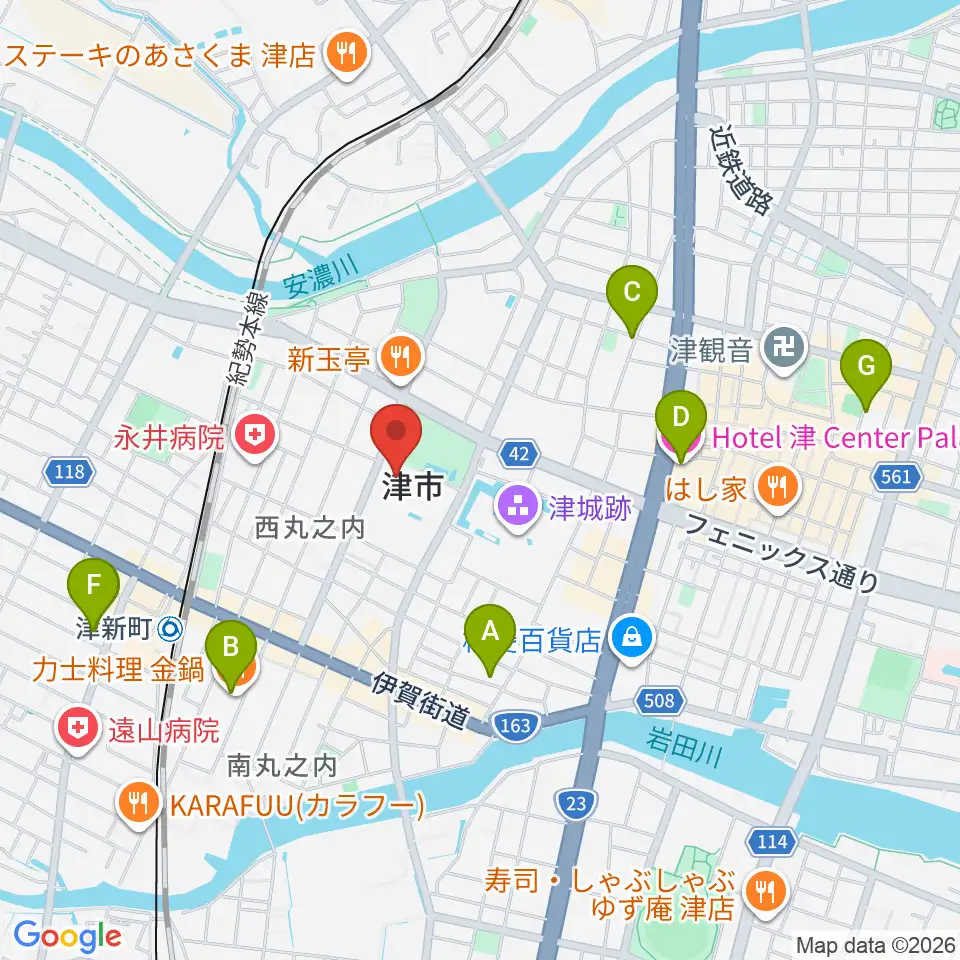 津リージョンプラザ周辺のホテル一覧地図