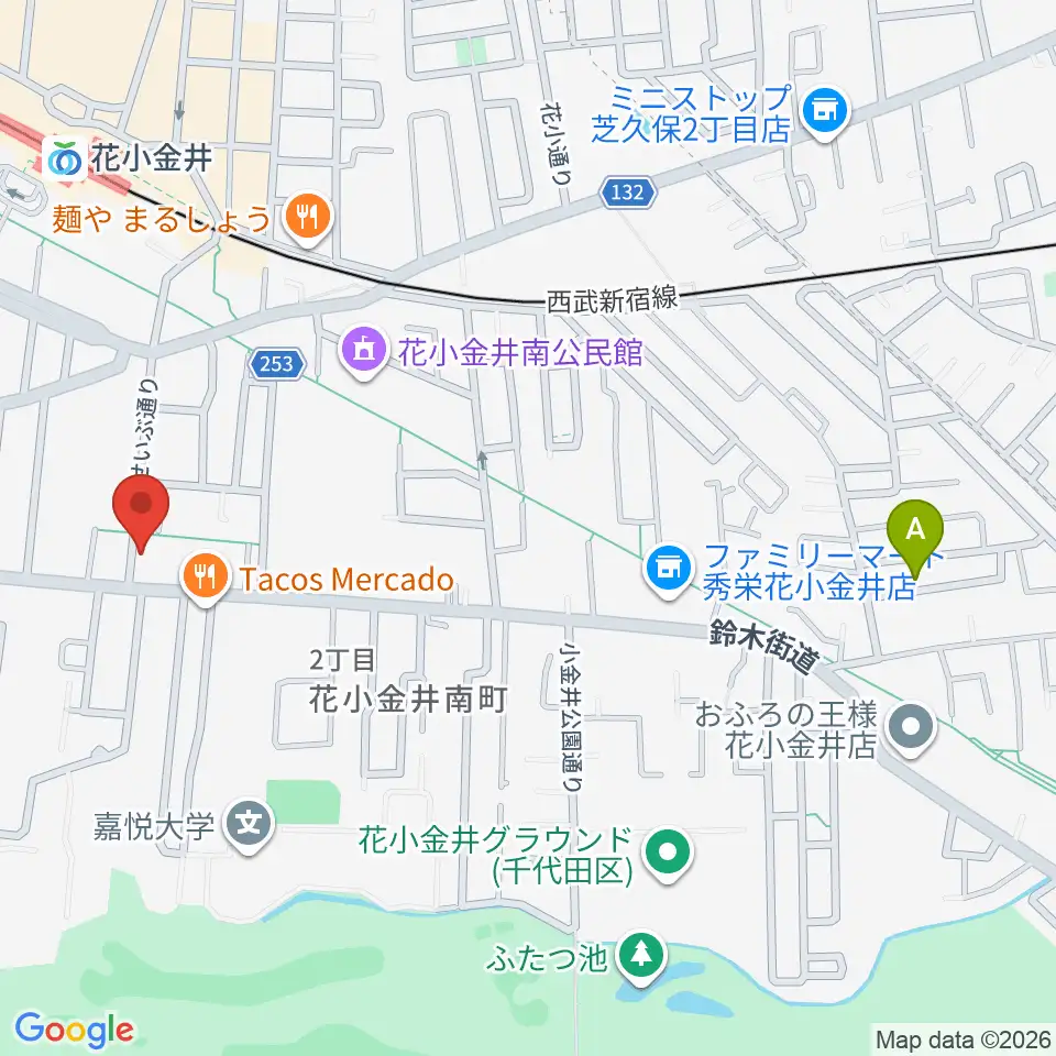 小平ギター&ピアノ教室 花小金井校周辺のホテル一覧地図