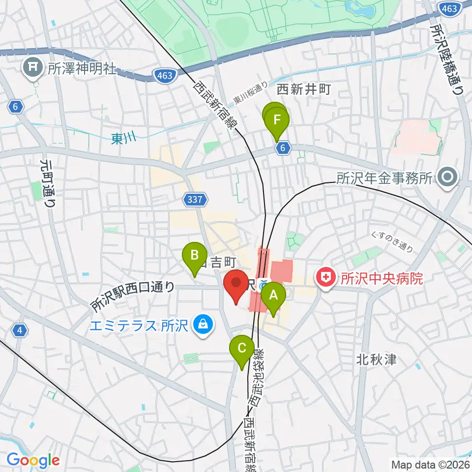 山野楽器 ワルツ所沢店周辺のホテル一覧地図