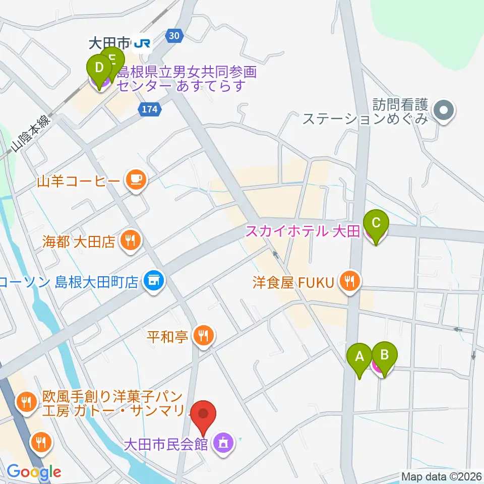 大田市民会館周辺のホテル一覧地図