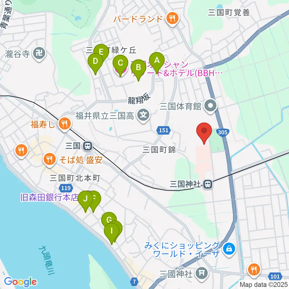 みくに未来ホール周辺のホテル一覧地図