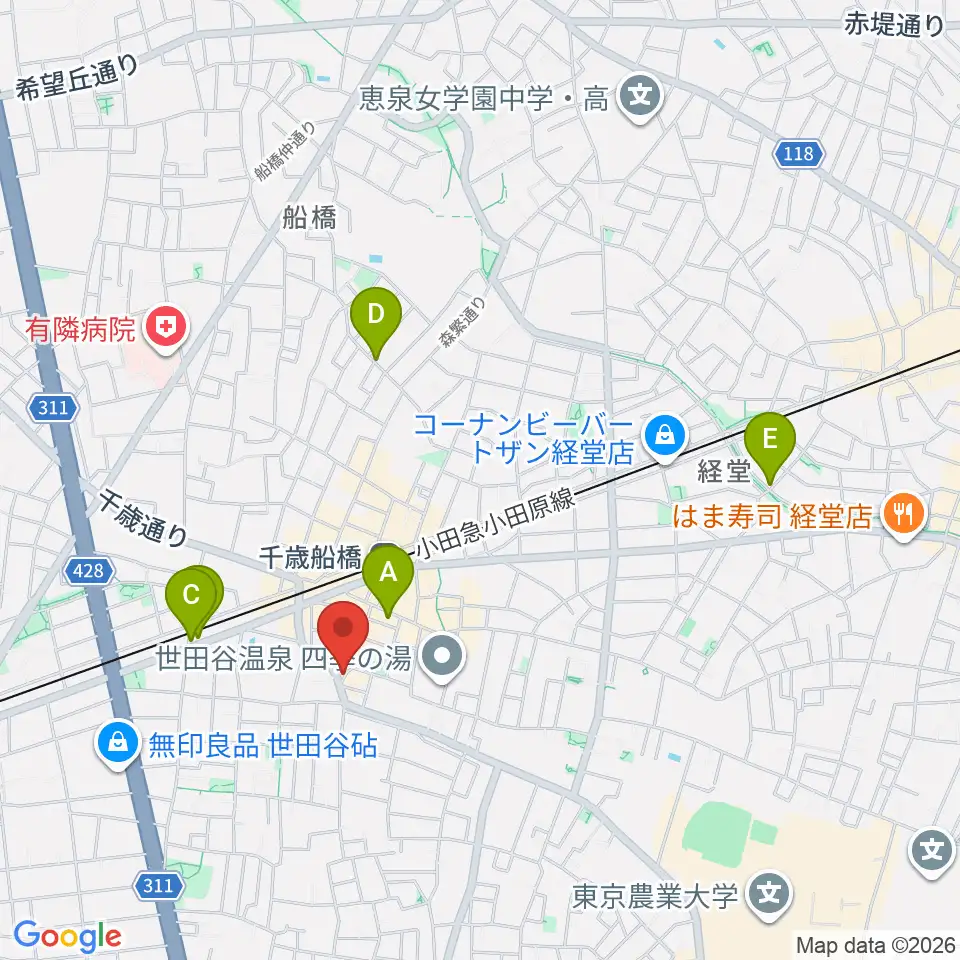 ユリミュージックキャンパス 千歳船橋教室周辺のホテル一覧地図
