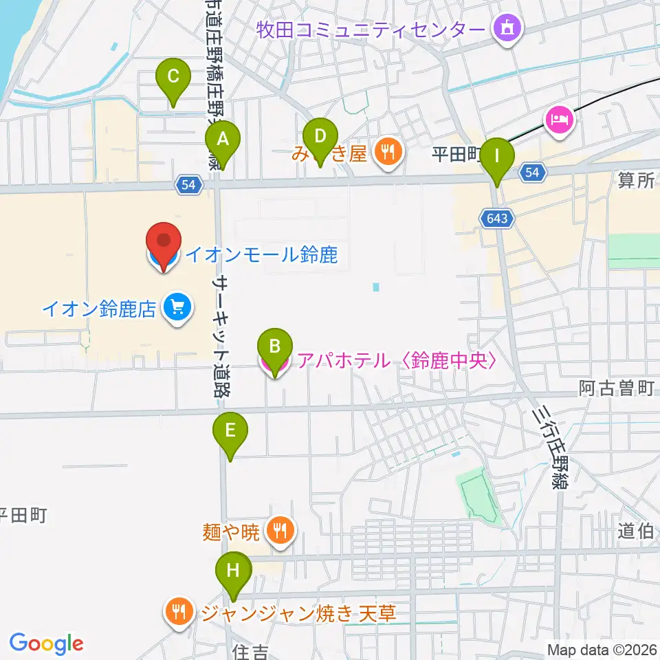 イオンシネマ鈴鹿周辺のホテル一覧地図