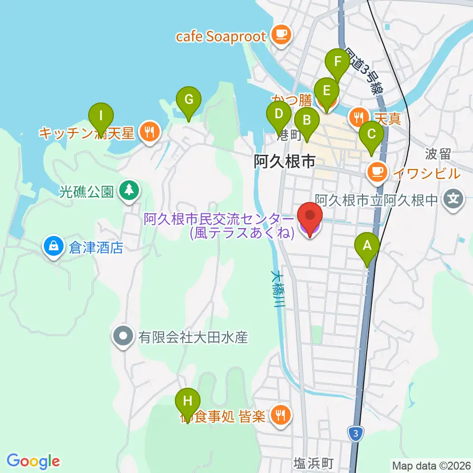 阿久根市民交流センター 風テラスあくね周辺のホテル一覧地図