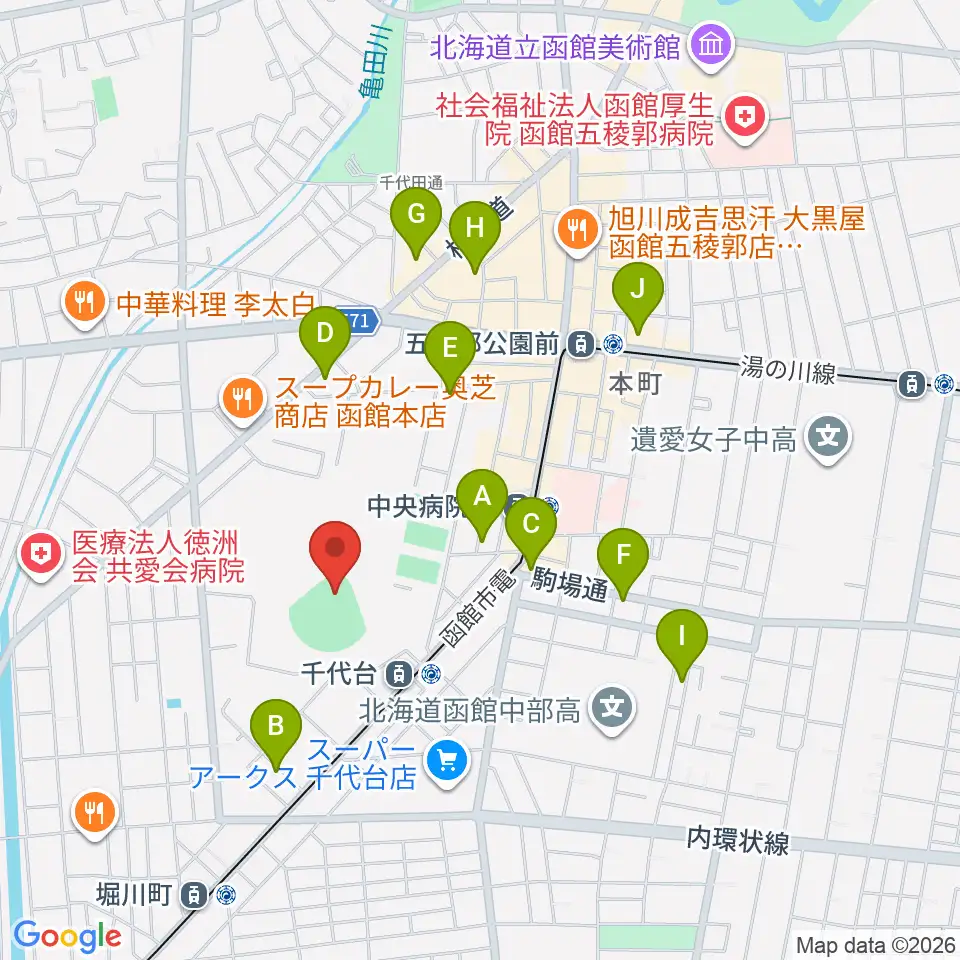 テーオーオーシャンスタジアム函館周辺のホテル一覧地図