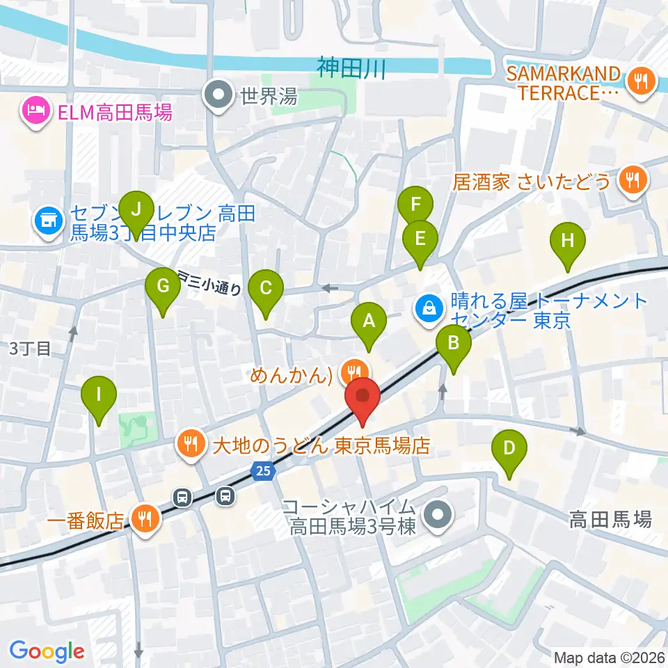 高田馬場フェリーハ音楽教室周辺のホテル一覧地図