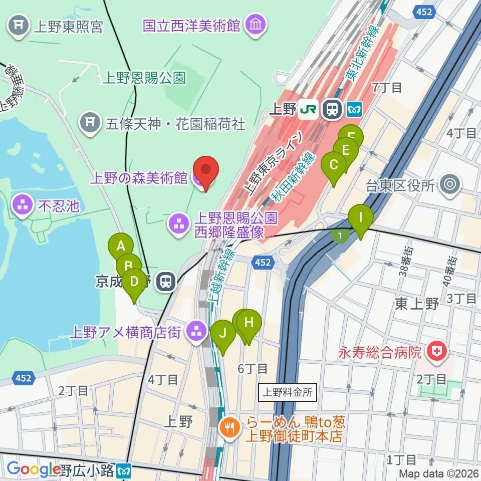 上野の森美術館周辺のホテル一覧地図