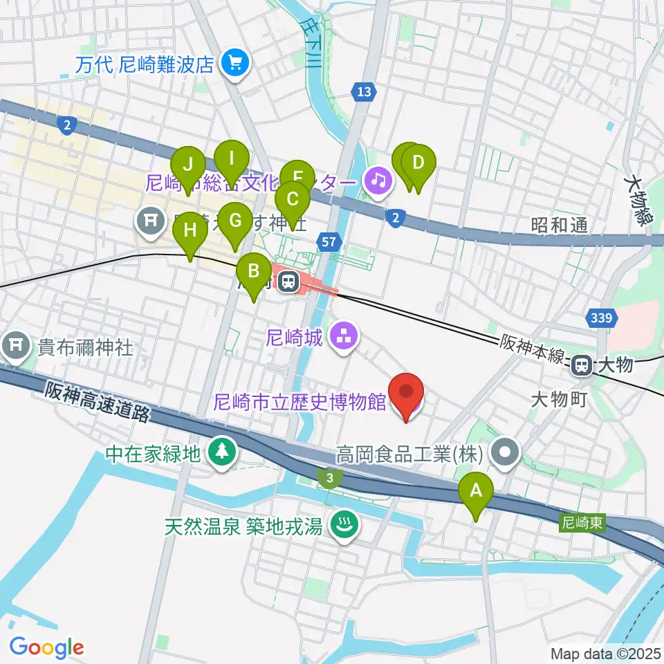尼崎市立歴史博物館周辺のホテル一覧地図