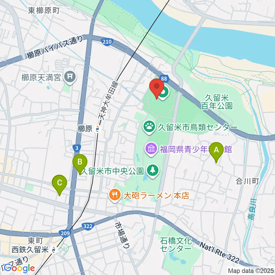 福岡県立久留米総合スポーツセンター陸上競技場周辺のホテル一覧地図