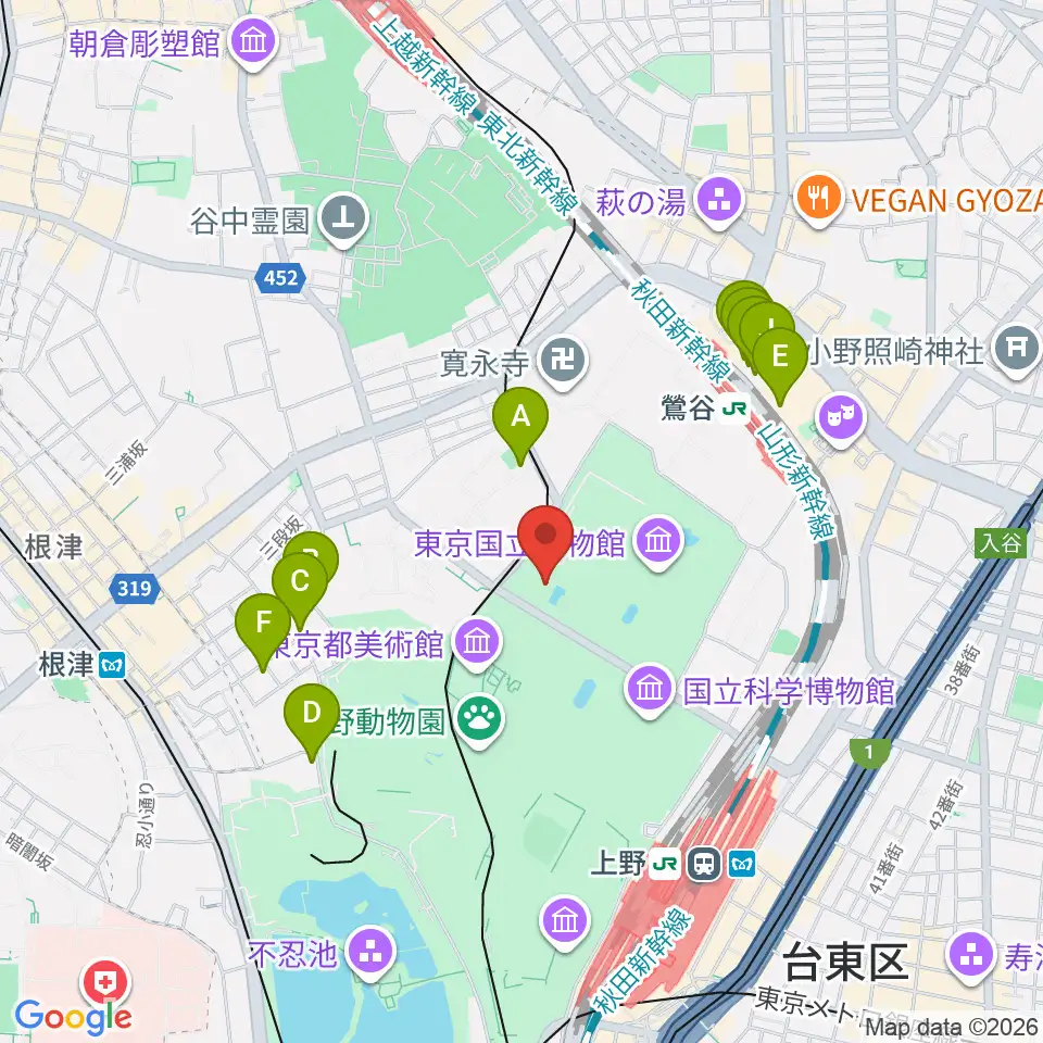東京国立博物館・法隆寺宝物館周辺のホテル一覧地図
