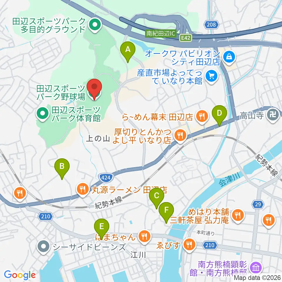 田辺スポーツパーク野球場周辺のホテル一覧地図