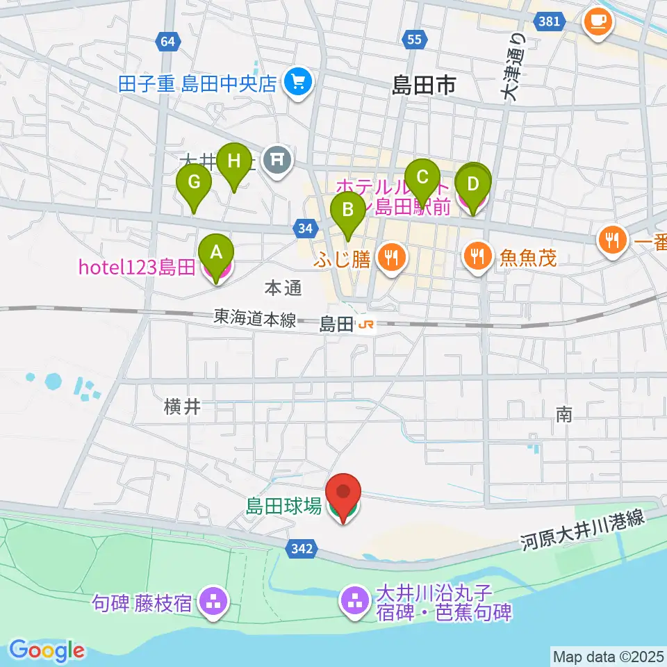 島田球場周辺のホテル一覧地図