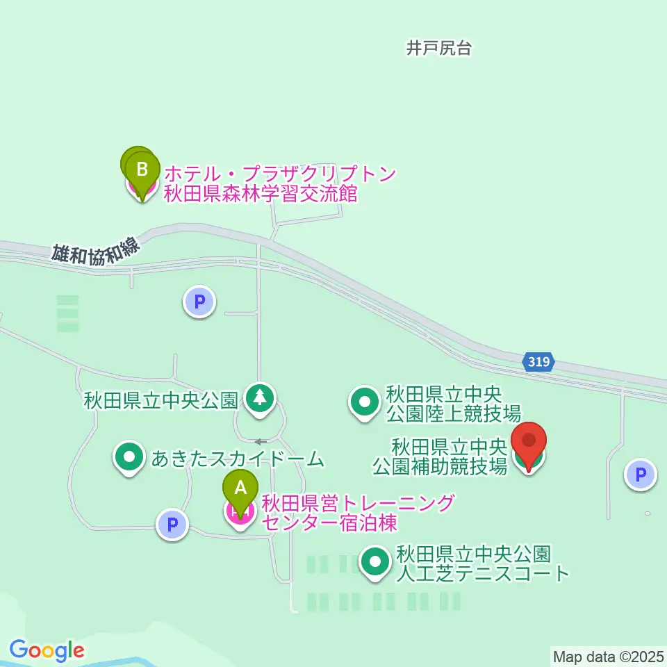 秋田県立中央公園補助陸上競技場周辺のホテル一覧地図
