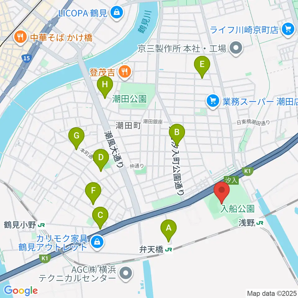 入船公園野球場周辺のホテル一覧地図