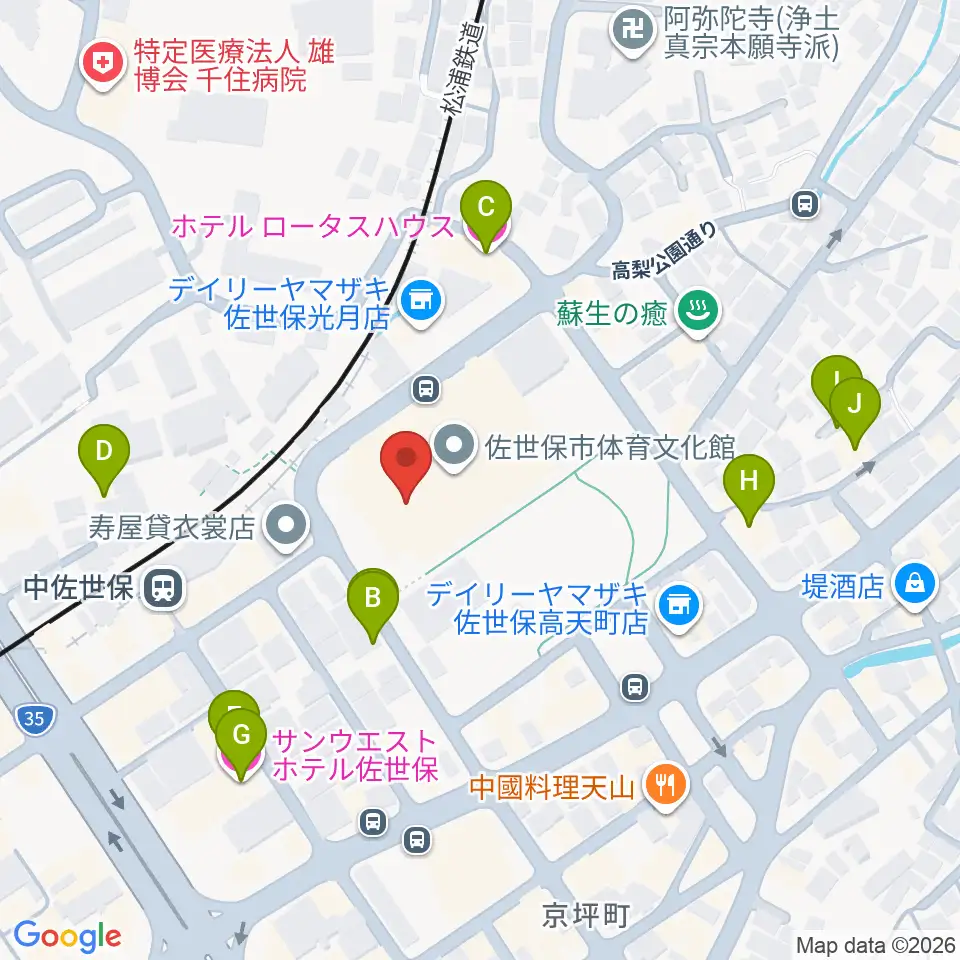 佐世保市体育文化館周辺のホテル一覧地図