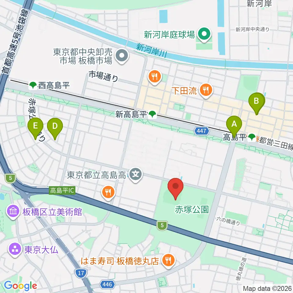 赤塚公園野球場周辺のホテル一覧地図
