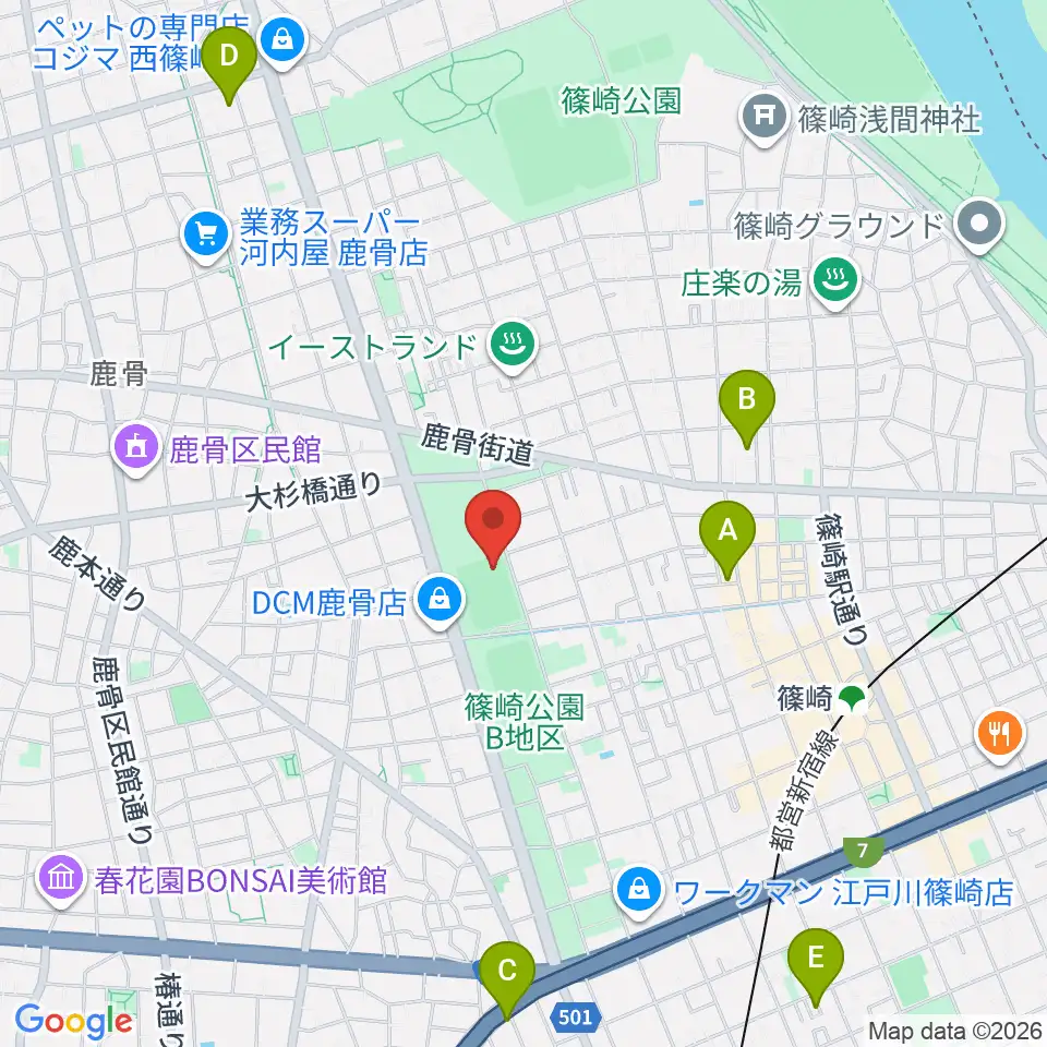 篠崎公園B地区鹿骨野球場周辺のホテル一覧地図