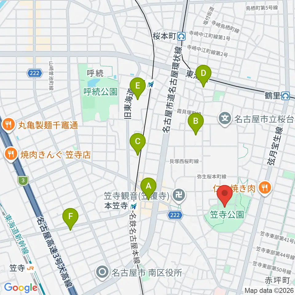 名古屋市見晴台考古資料館周辺のホテル一覧地図