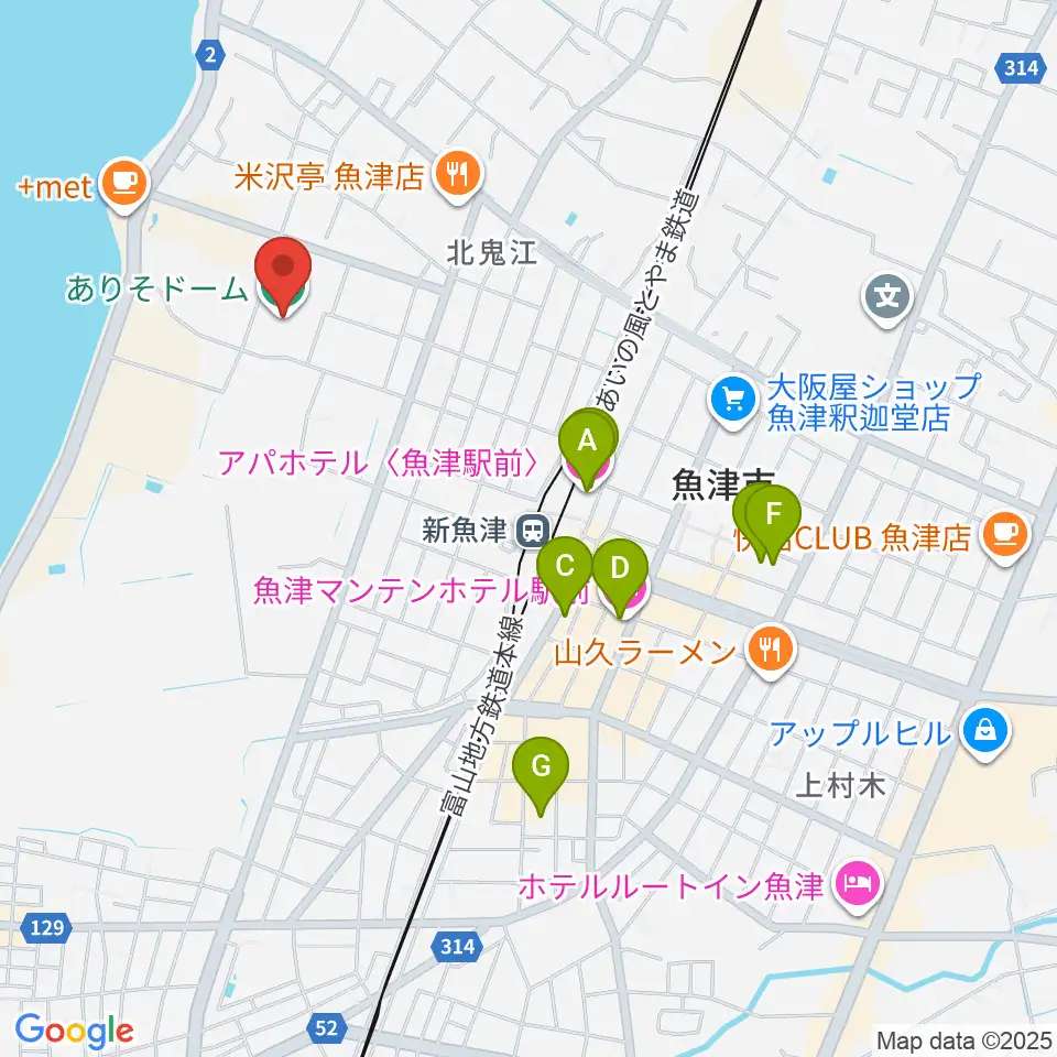 ありそドーム周辺のホテル一覧地図