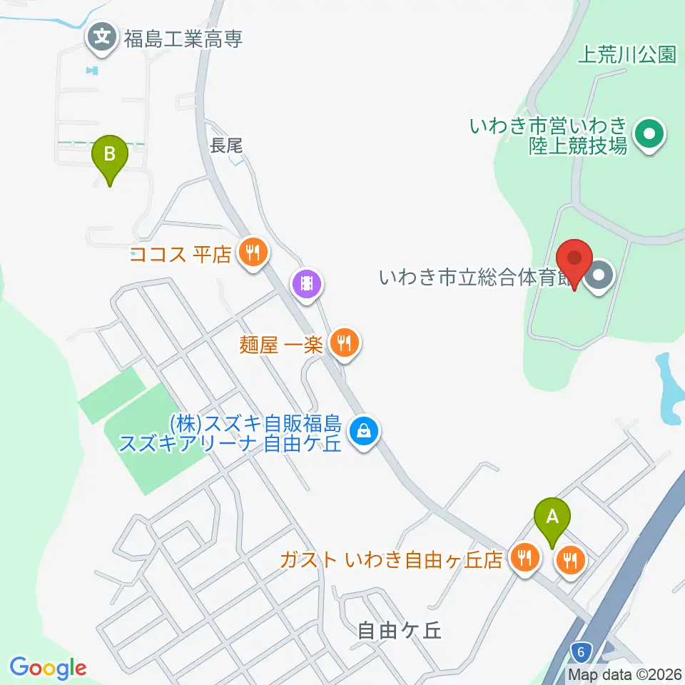 いわき市立総合体育館周辺のホテル一覧地図