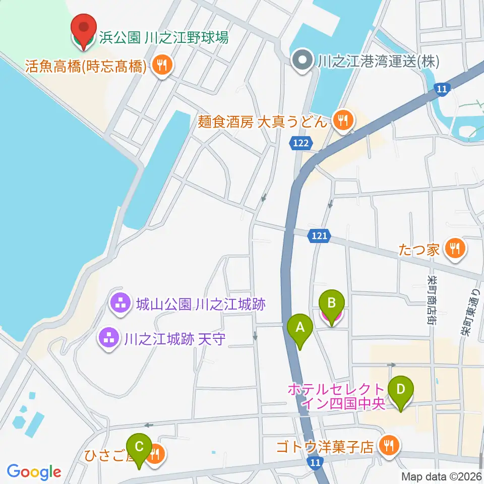 浜公園川之江野球場周辺のホテル一覧地図