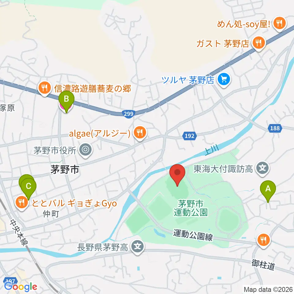 茅野市運動公園陸上競技場周辺のホテル一覧地図