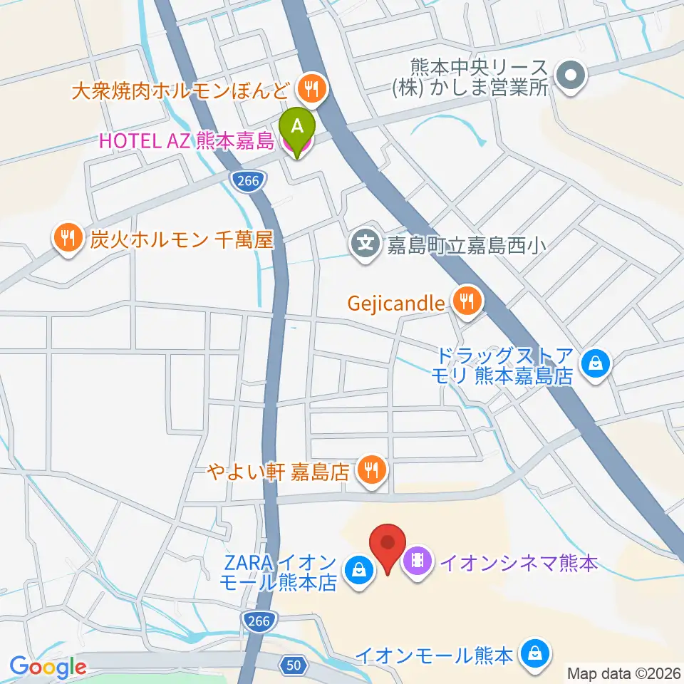 イオンシネマ熊本周辺のホテル一覧地図