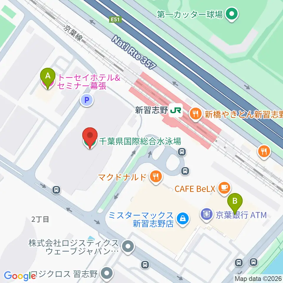 千葉県国際総合水泳場周辺のホテル一覧地図