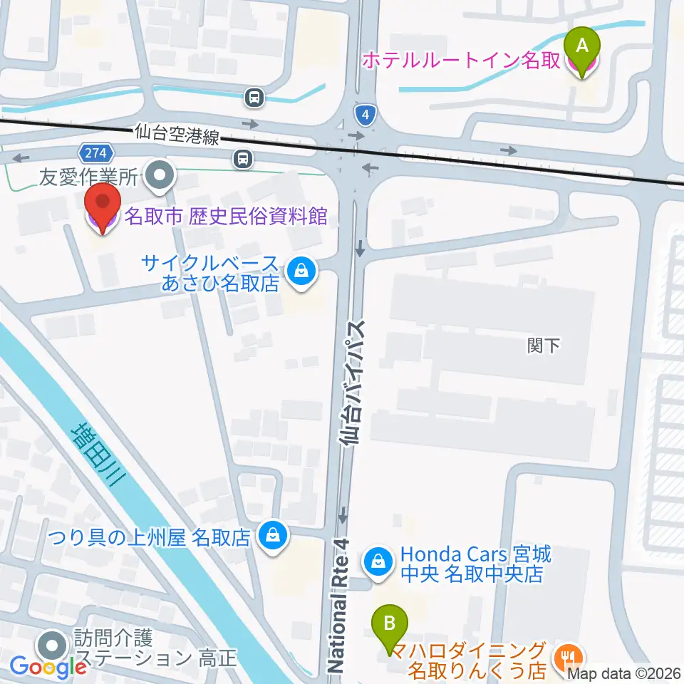 名取市歴史民俗資料館周辺のホテル一覧地図