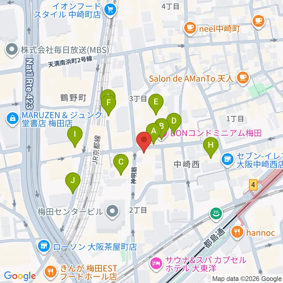 ESPギタークラフト・アカデミー大阪校周辺のホテル一覧地図