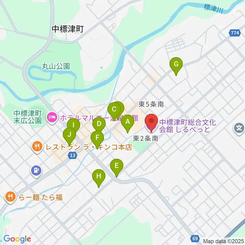 中標津町総合文化会館周辺のホテル一覧地図