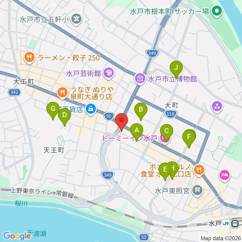 水戸ライトハウス周辺のホテル一覧地図