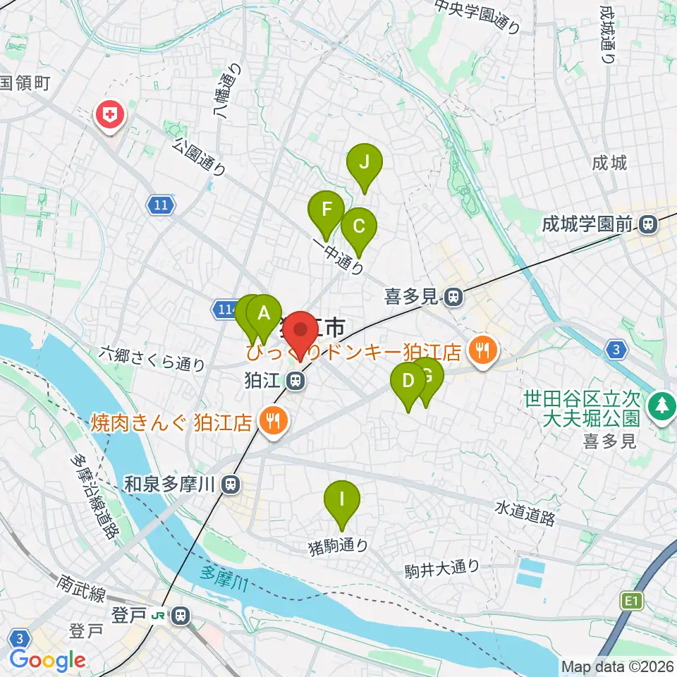 狛江エコルマホール周辺のホテル一覧地図