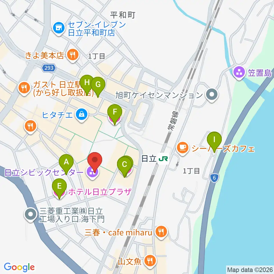 日立シビックセンター周辺のホテル一覧地図
