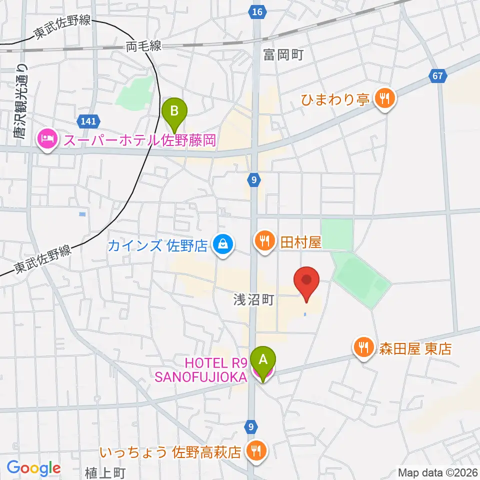 佐野市文化会館周辺のホテル一覧地図