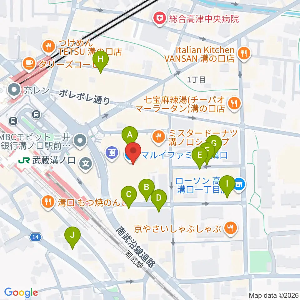 川崎市高津市民館周辺の駐車場・コインパーキング一覧地図