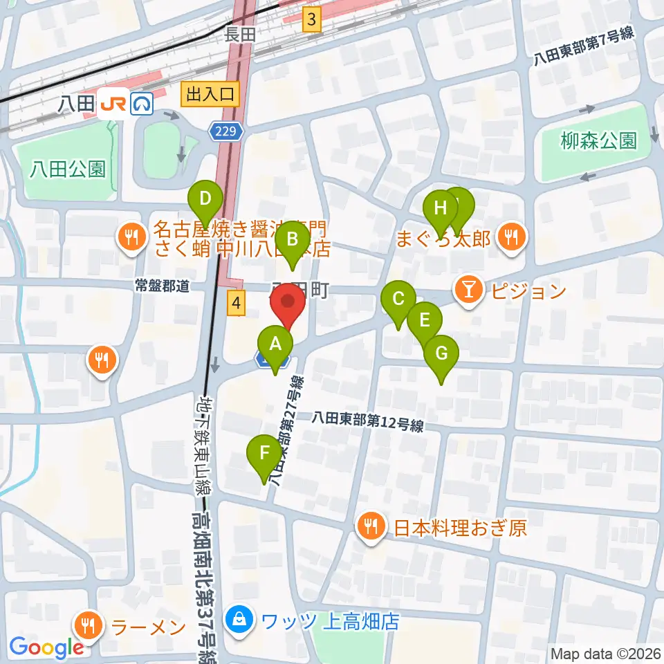 矢木楽器店 八田本店周辺の駐車場・コインパーキング一覧地図