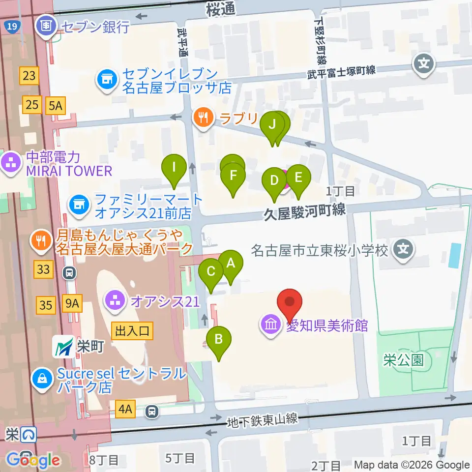 愛知県芸術劇場周辺の駐車場・コインパーキング一覧地図