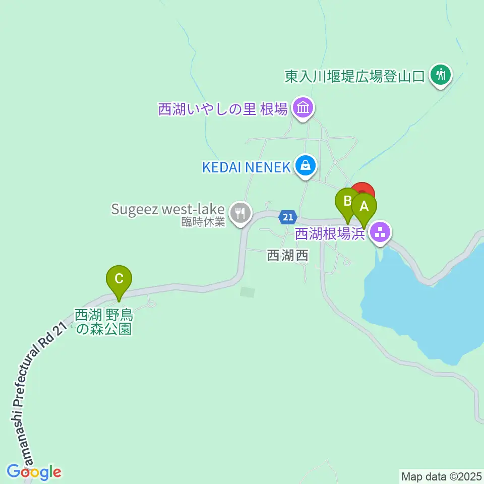 西湖根場浜バス駐車場