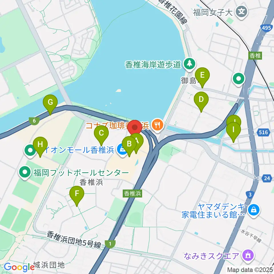 ヨシダ楽器イオン香椎浜店周辺の駐車場・コインパーキング一覧地図